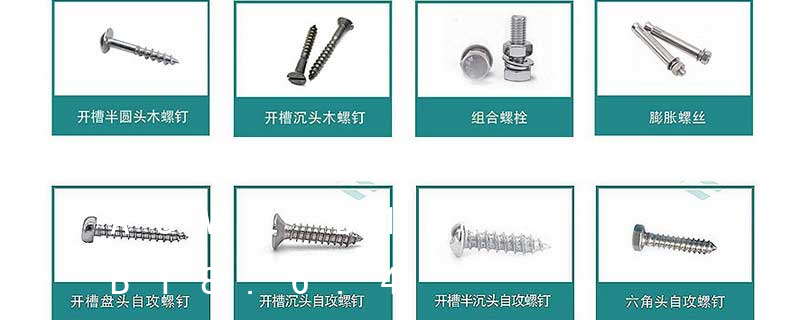 名稱: 1.機螺釘 2.自攻螺釘 3.鉆尾螺釘 4.墻板釘 5.纖維板釘 6.木螺釘7.六角木螺釘 8.不脫出螺釘 9.組合螺釘 10.微型螺釘 11.家具螺釘 12.電子螺釘 頭型: 1.六角頭(hexagon head) 2.六角頭法蘭面(hexagon head with flange) 3.方頭(square head) 4.T形頭T head (hammer head)5.扁圓頭mushroom